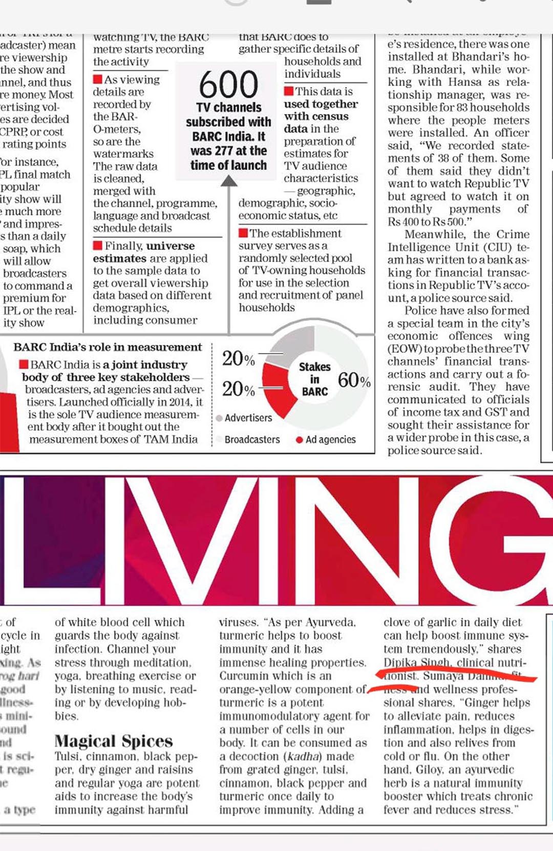 Nutritionist Dipika's column on World Cancer Day in Times of India, Kolkata Edition